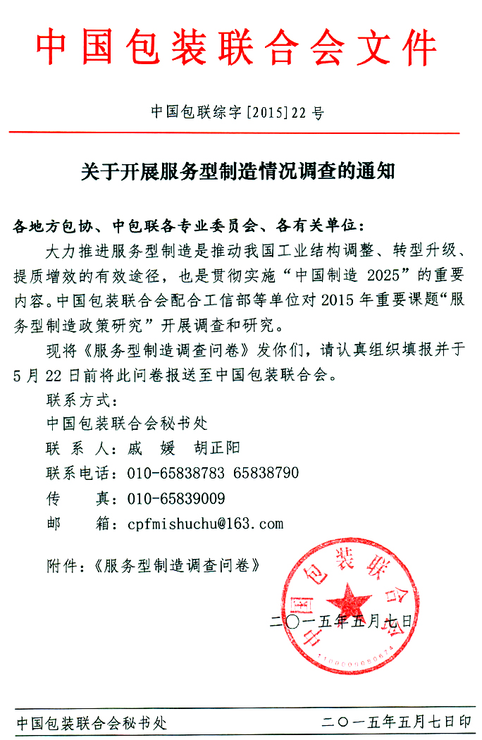 关于开展服务型制造情况调查的通知