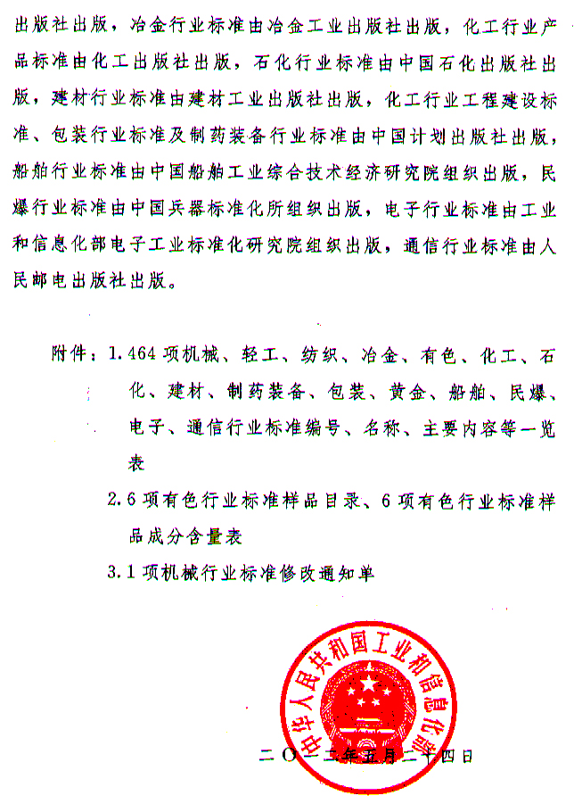 1. 464项机械、轻工、纺织、冶金、有色、化工、石化、建材、制药装备、包装、黄金、船舶、民爆、电子、通信行业标准编号.doc