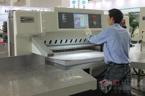 在现场,记者看到了这条裁切生产线,上海申威达机械有限公司的大区经理陈国强详细介绍了整个自动裁切生产线的操作流程。 陈国强经理讲到,“X系列集成式全自动裁切生产线包括升降车、闯纸机、气垫工作台、切纸机和全自动卸纸机,其中以切纸机为集成控制的主机,方便各单机的自由组合。自主创新信息流的集成,辅机参数设置在主机上,通过以太网从印刷机提取CIP3、CIP4文件中的裁切信息,自动编程以实现纸堆自动闯齐、裁切、卸纸,可承担各种印刷物品的流水线裁切作业任务。全自动卸纸机具有对中卸纸功能,纸堆居中堆垛在托盘上,可以直接上印刷机印刷,无需重新人工理纸堆垛,从而减少印刷的辅助时间,在高端印刷企业有着稳定的刚性需求。”
